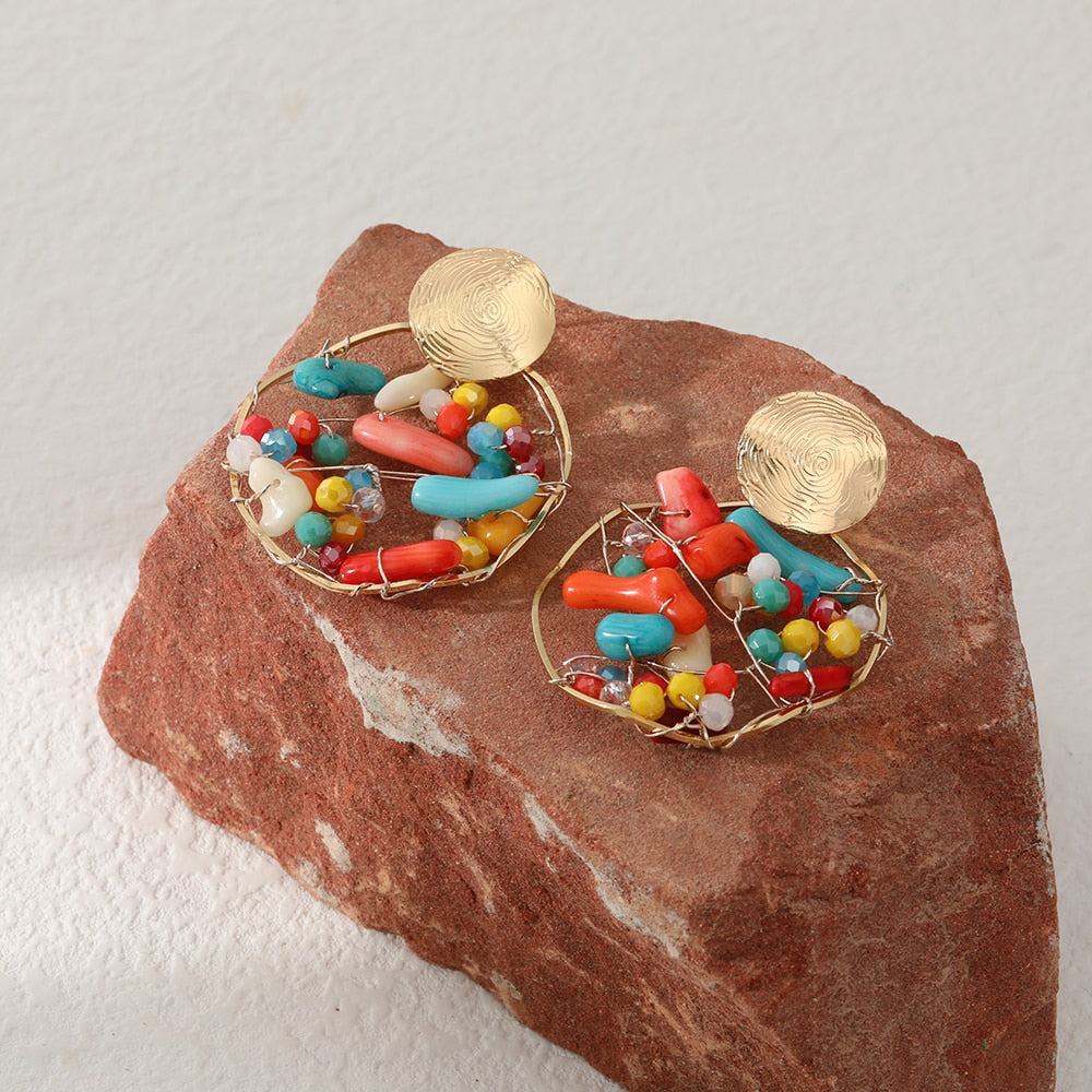 Boho Colorful Beaded Round Drop Earrings Women Fashion Creative Art Cute Stylish