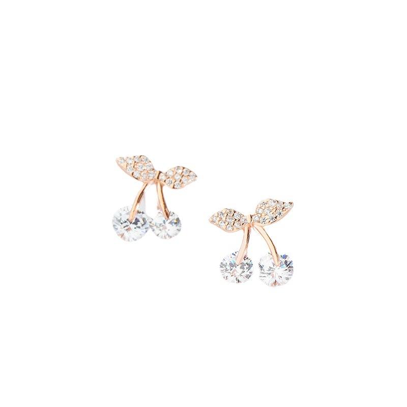 Zircon Cherry Decor Earrings for Women Girls Ear Studs Jewelry Gift Fashion