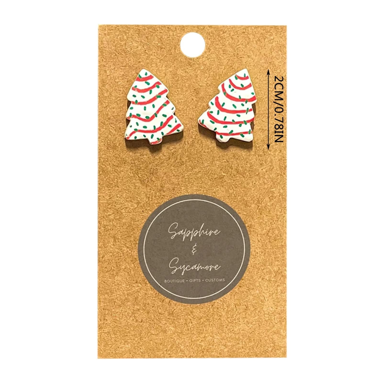 Christmas Tree Drop Earrings for Women Christmas Plaid Print PU Leather Earrings