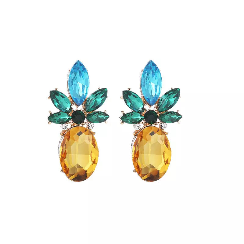 Rhinestone Pineapple Shaped Stud Earrings 1pair for Women Girls Ear Studs