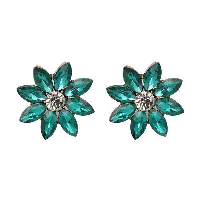 1pair Rhinestone Decor Flower Shaped Stud Earrings for Women Girls Ear Studs