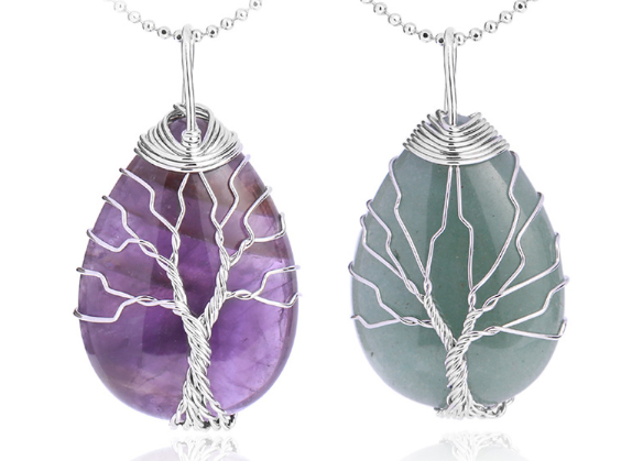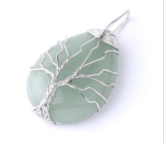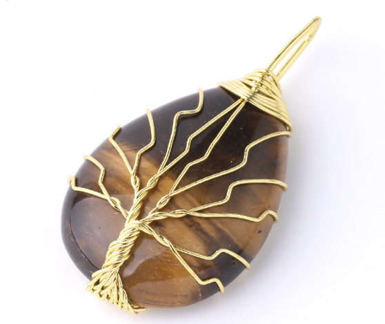 Natural Stone Pendant Gold Color Wire Wrap Gem
