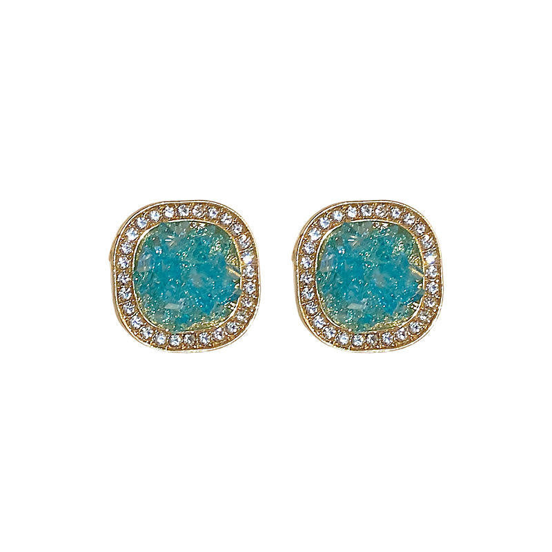 Rhinestone Decor Geometric Design Stud Earrings for Women Girls Ear Studs