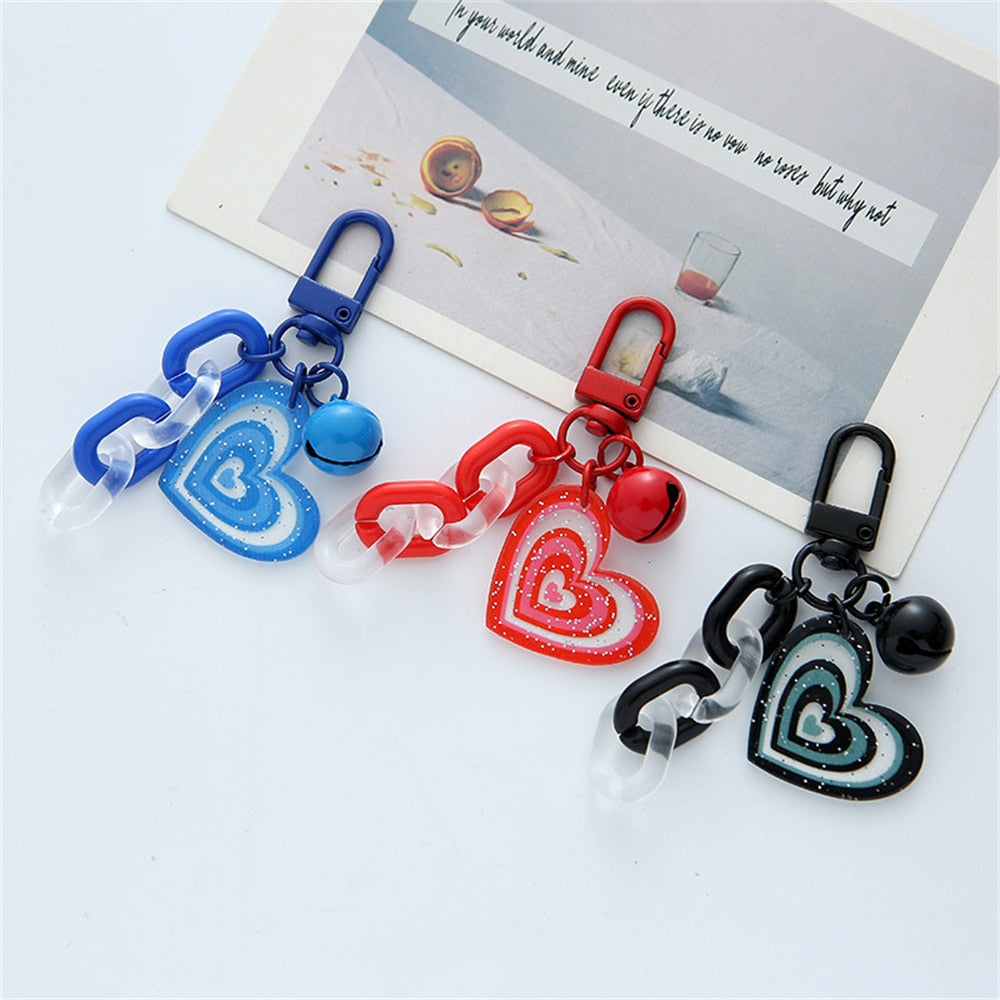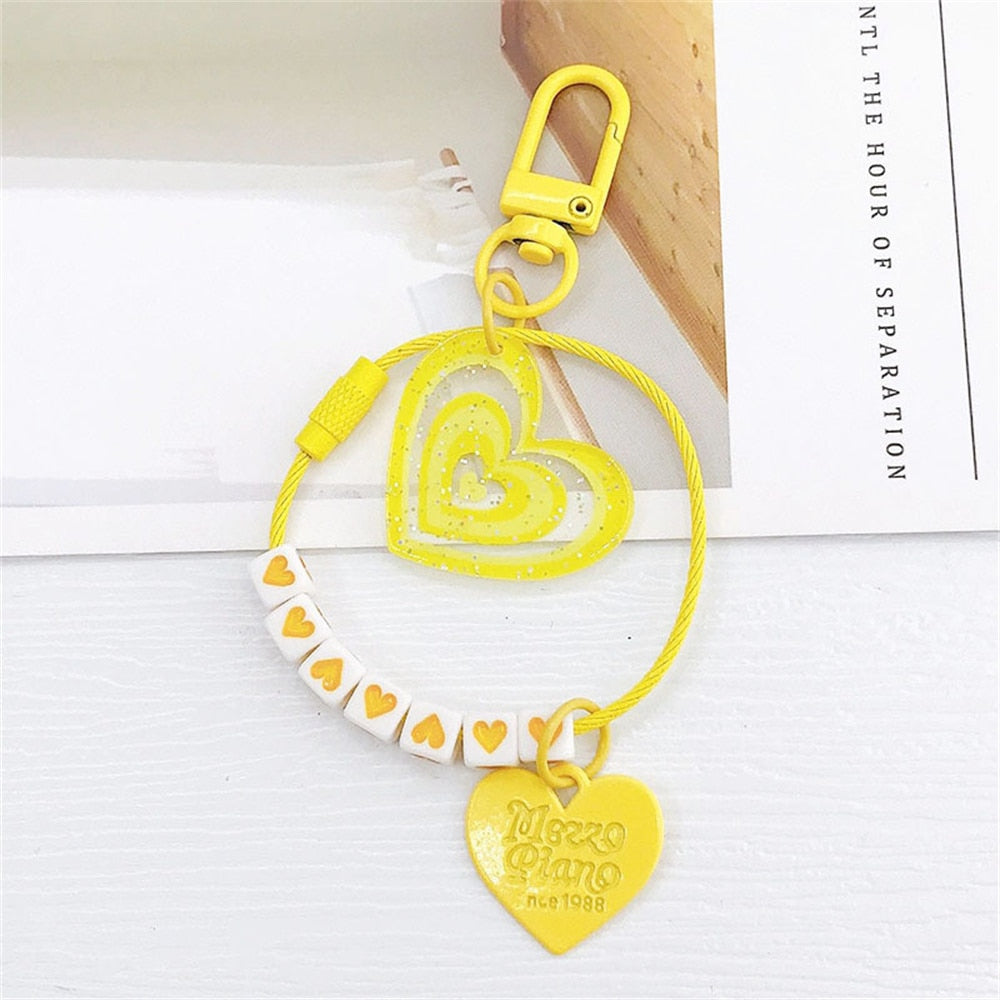 5 Colors Heart Pendant Beads Acrylic Keychains Cute Love Keyrings Women Bag