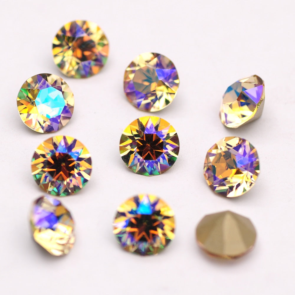 Item:Â Glass Diamond Shape Round Stone 5-10mm Cone Pointed Crystal Pointback Nail Art