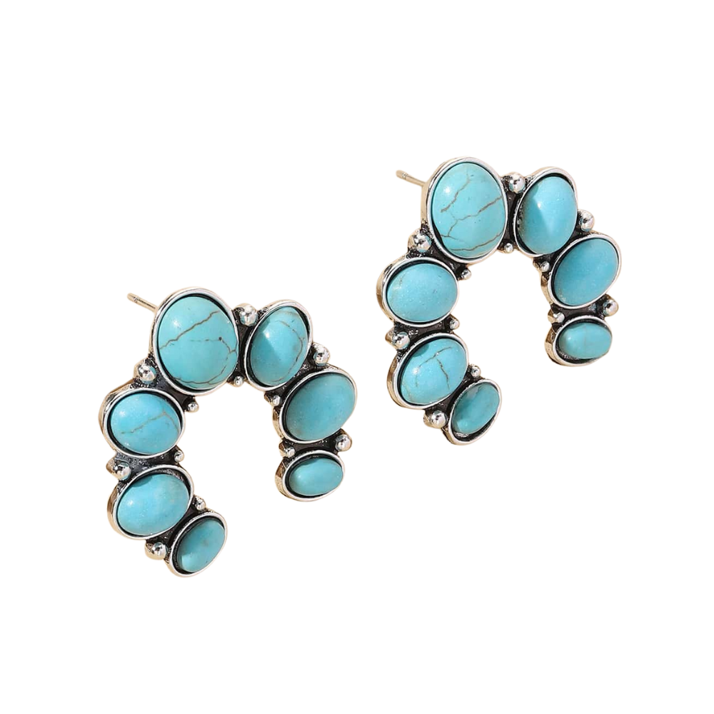 Turquoise Decor Stud Earrings for Women Girls Ear Studs Jewelry Gift Fashion